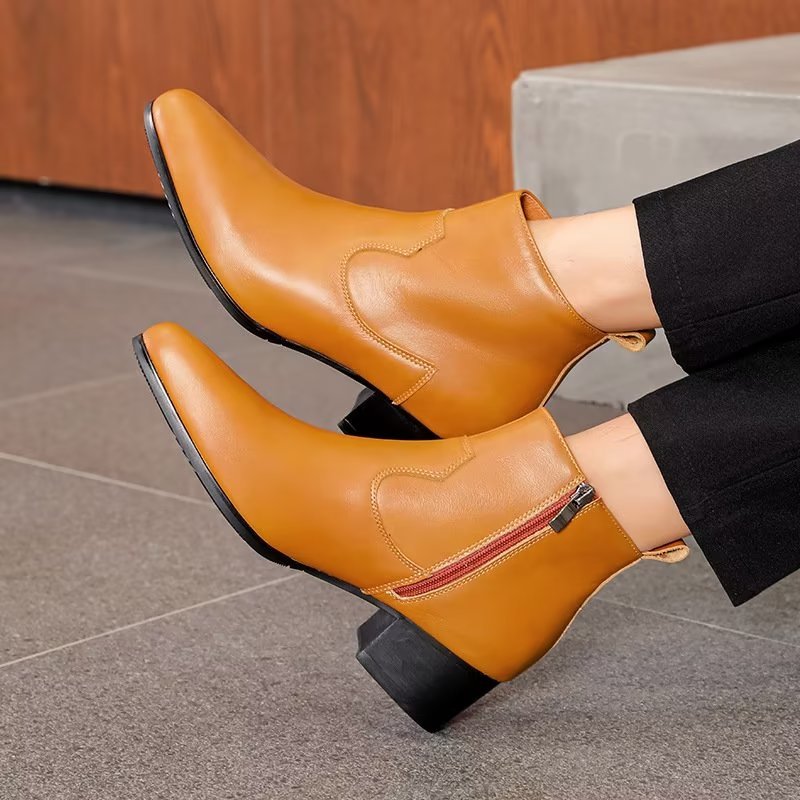 Herenlaarzen Echt Lederen Enkellaarzen Met Ritssluiting