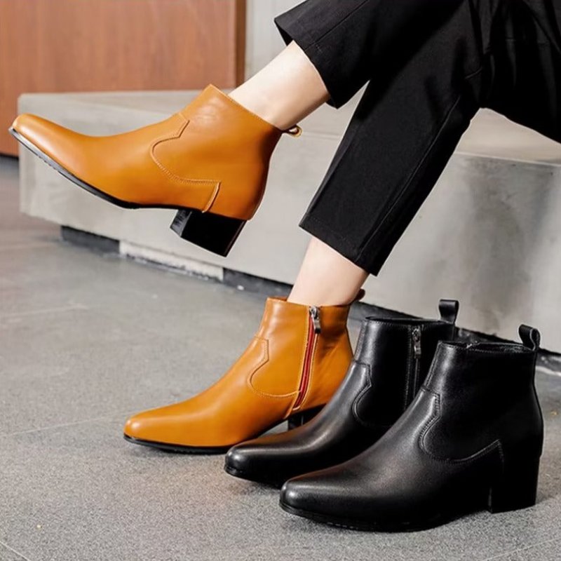 Maak Kennis Met Onze Herenlaarzen Van Echt Leer Met Ritssluiting, Het Toonbeeld Van Stijl En Verfijning. Deze Laarzen Zijn Gemaakt Van Echt Leer Van De Beste Kwaliteit En Zijn Ontworpen Om Je Modespel Naar Nieuwe Hoogten Te Tillen. Het Bovenmateriaal Is Gemaakt Van Rundleer En Zorgt Voor Duurzaamheid En Een Luxueus Gevoel, Terwijl De Voering Van Varkensleer/Bont Zorgt Voor Ultiem Comfort En Warmte. Met Een Trendy Enkelhoogte, Gemakkelijke Ritssluiting En Elegante Spitse Neusvorm Zijn Deze Laarzen Perfect Voor Elke Gelegenheid. Maak Je Look Compleet En Maak Een Statement Met Deze Prachtige Laarzen.