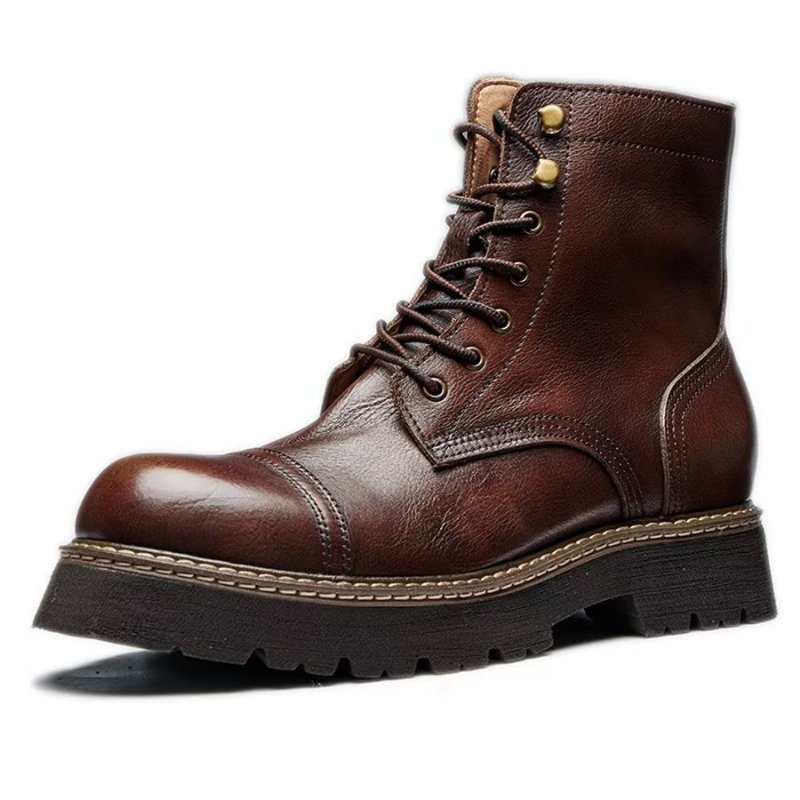 Herenlaarzen Elegante Tweekleurige Enkellaarsjes Met Veters Koeienhuid