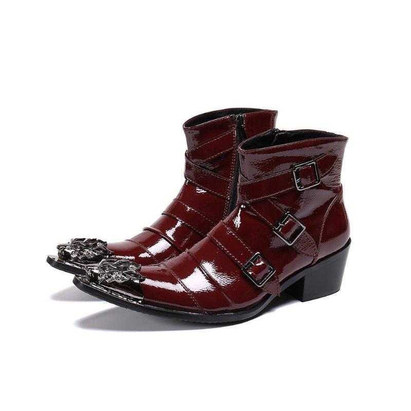 Herenlaarzen Exotische Metalen Neus Westerse Punk Lederen Loafers
