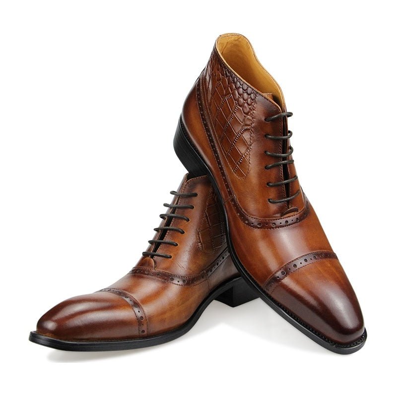 Stap In De Wereld Van Luxe En Verfijning Met De Herenlaarzen Opulent Croctex Pointed Toe Dress Boots. Deze Laarzen Zijn Gemaakt Van Echt Leer En Voorzien Van Een Uniek Croctex-Printpatroon En Zijn Het Toonbeeld Van Elegantie. Met Een Comfortabele Pasvorm, Modieus Enkelbandje En Gemiddelde Hakhoogte Zijn Ze Perfect Voor Elke Zakelijke Gelegenheid. Omarm Luxe En Stijl Bij Elke Stap Die Je Zet.